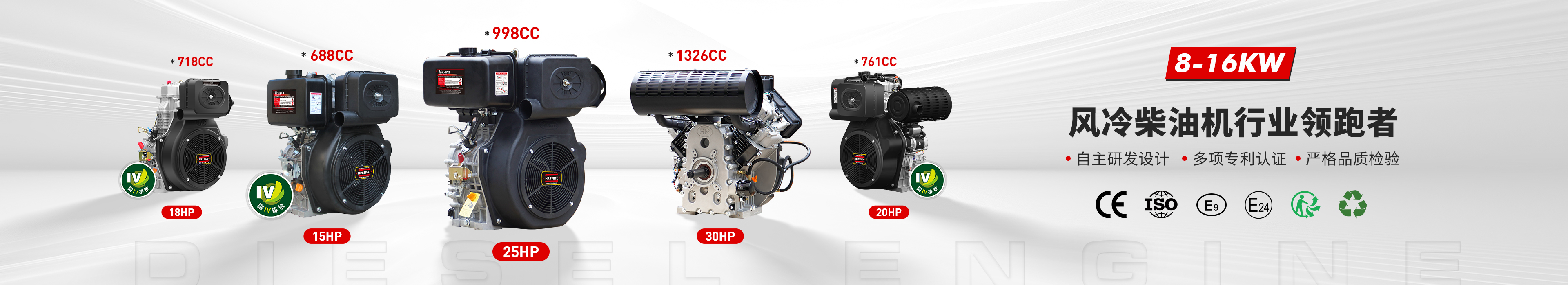 公司主營產品包括風冷柴油動力、風冷/水冷柴油發電機組、汽油/柴油水泵機組、小型農用機械和道路機械設備等,可廣泛應用于多個行業:民用、公用、商業、電站、基站、軍工等。公司研發了具有自主知識產權的單缸風冷動力(198FA排量為633CC 1102F排量為718CC,雙缸風冷發電機組2V98F排量為1326CC公司先后獲得發明、實用新型、外觀設計證書,共計68